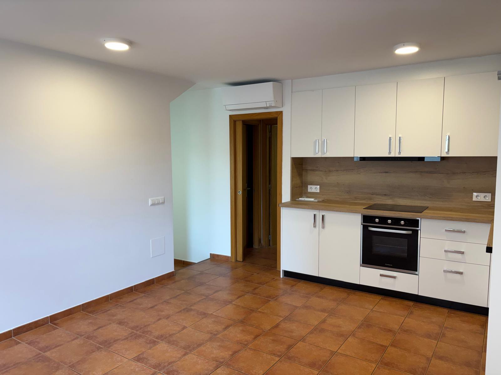 La primera planta consta de un gran espacio con bomba de calor-frio que acoge la cocina y el salón-comedor, una habitación doble, y un cuarto de baño completo con plato de ducha.
